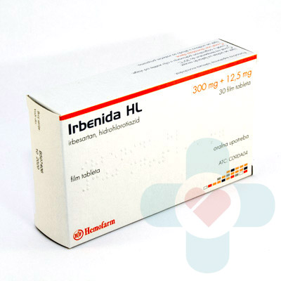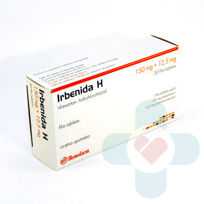 This medicine contains two active ingredients, irbesartan and hydrochlorothiazide. Irbesartan belongs to angiotensin receptor blockers (ARBs). These medicines stop the activation of Angiotensin-II receptors in blood vessels which causes the blood vessels to widen, and the blood pressure to lower. Hydrochlorothiazide belongs to a group of medicines called thiazide diuretics, also known as water tablets. These medicines cause the kidneys to produce more urine, and in that way they free your body from retaining the extra fluid. Irbenida H is prescribed for the treatment of hypertension (high blood pressure). [...]